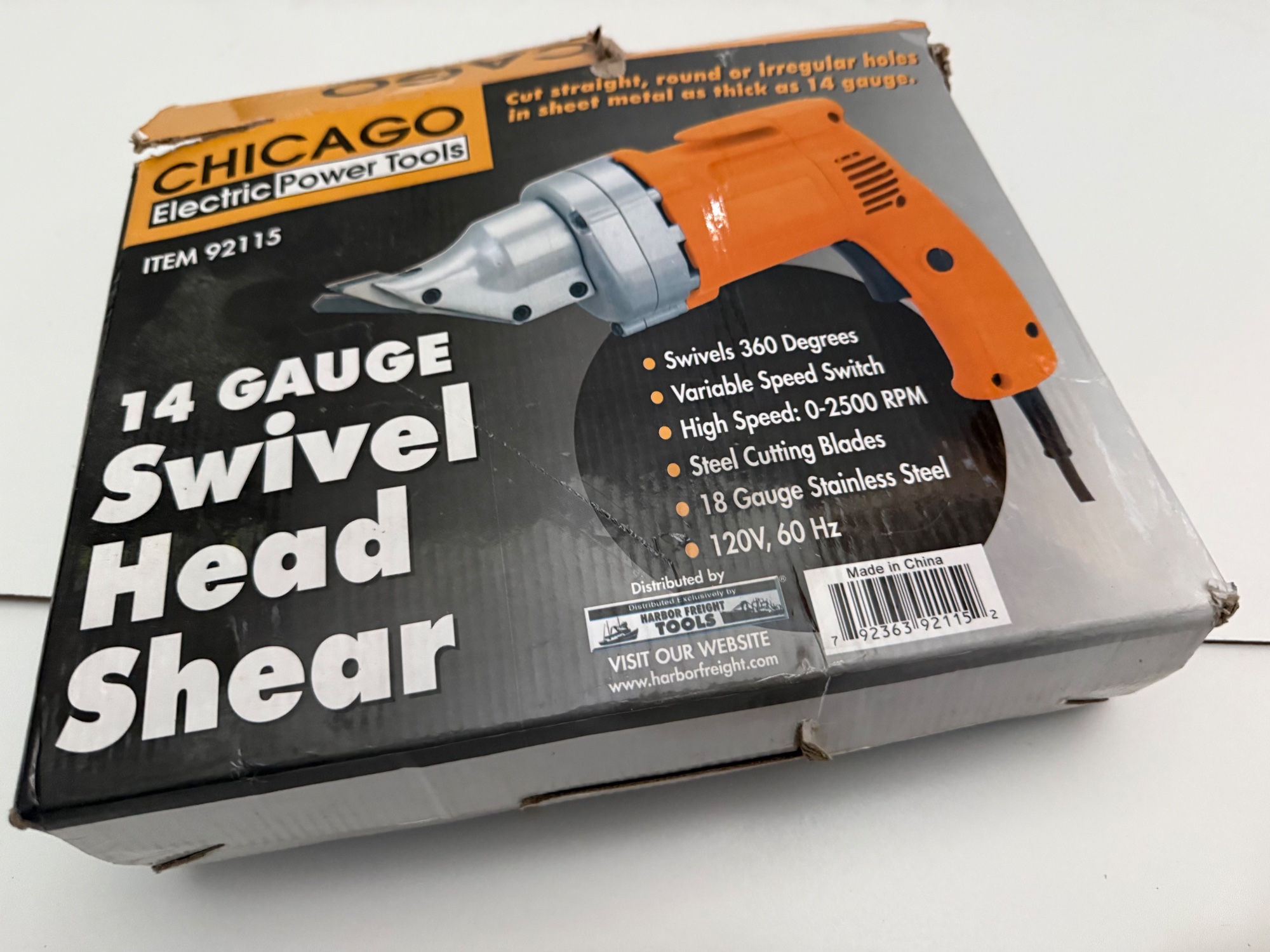 ⚡ Cut Sheet Metal Fast, Clean & Precise Handle metal cutting jobs with ease using this Chicago Electric 14-gauge electric metal shear. The swivel head design makes it perfect for curves, corners, and tight angles. ⸻ 🔧 What’s Included • Chicago Electric electric metal shear (Model 92115) • Ready-to-use setup ⸻ ⚡ Features • Cuts up to 14-gauge sheet metal • Swivel head for precision cutting • 120V electric powered • Clean, burr-free cuts • Easy control for straight or curved lines ⸻ 🎯 Perfect For • HVAC ductwork • Roofing projects • Metal fabrication • Sheet metal trimming • DIY home projects